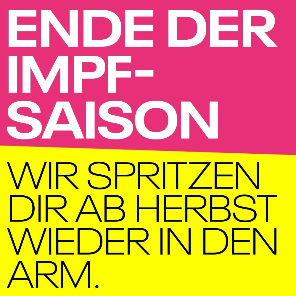 Die Impf-Saison ist zu Ende. Wir bedanken uns für euer Vertrauen. Wir sind ab Herbst wieder parat und spritzen euch in den Arm.