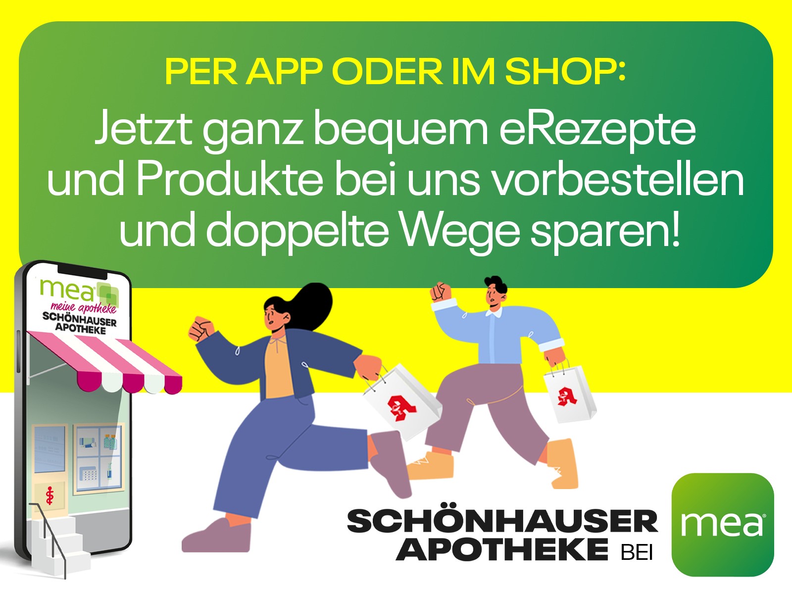Beautiful people, you can now send us your eRezept and pre-order your products and we let you know when your order is ready for pickup. It’s quick and easy — with the mea app.